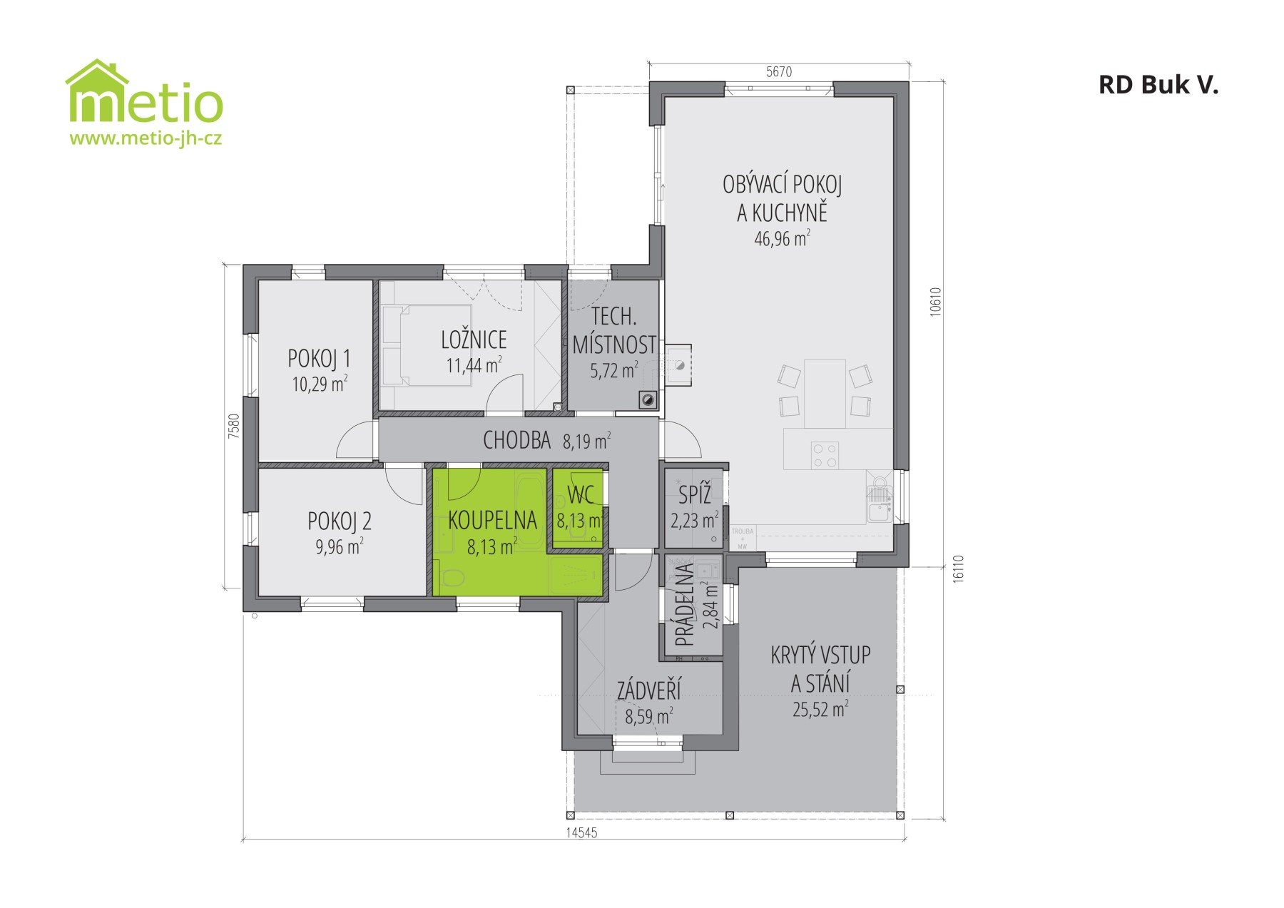 - užitná plocha domu – 116,29 m2+ 41,52 m2 krytý vstup, stání a terasa